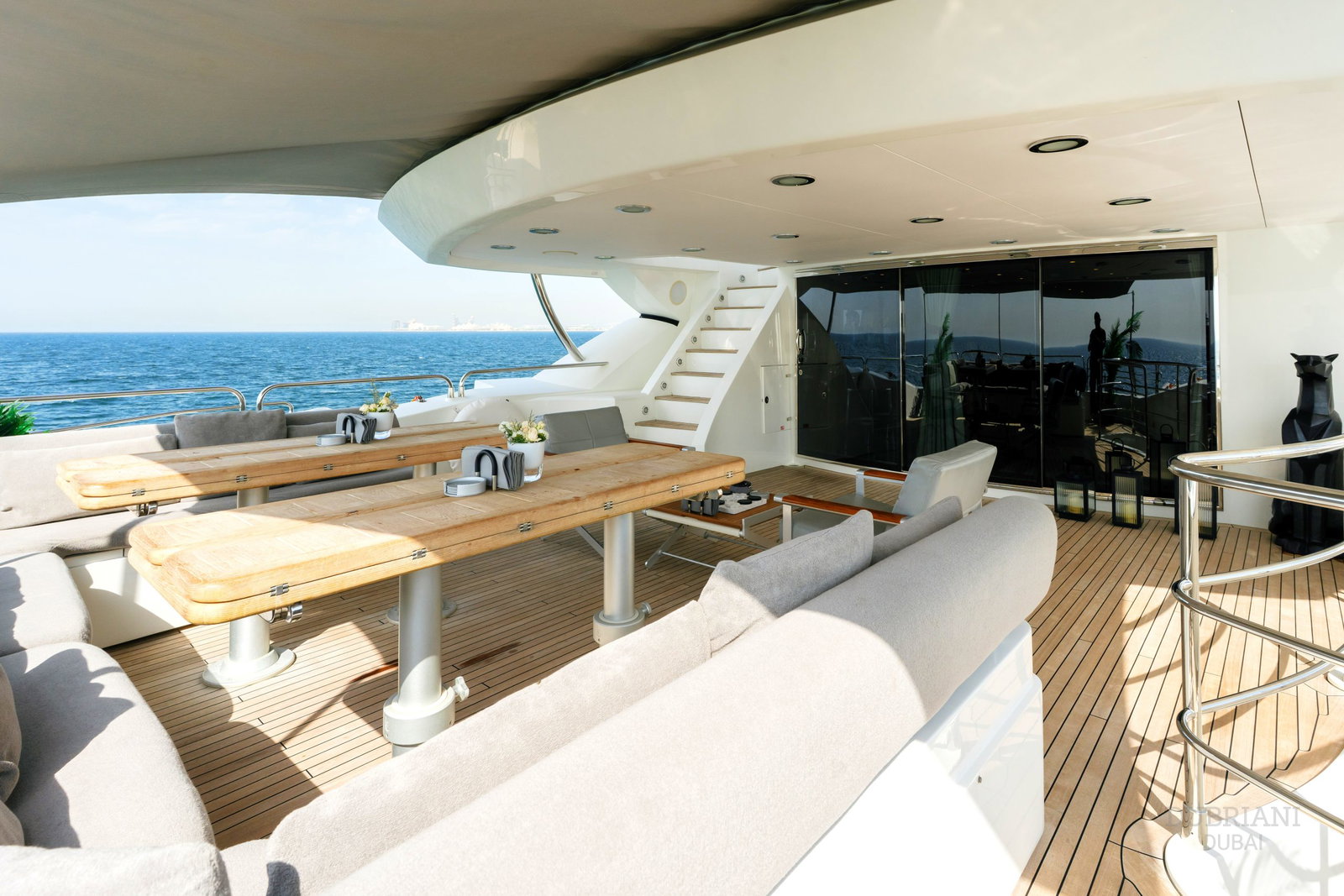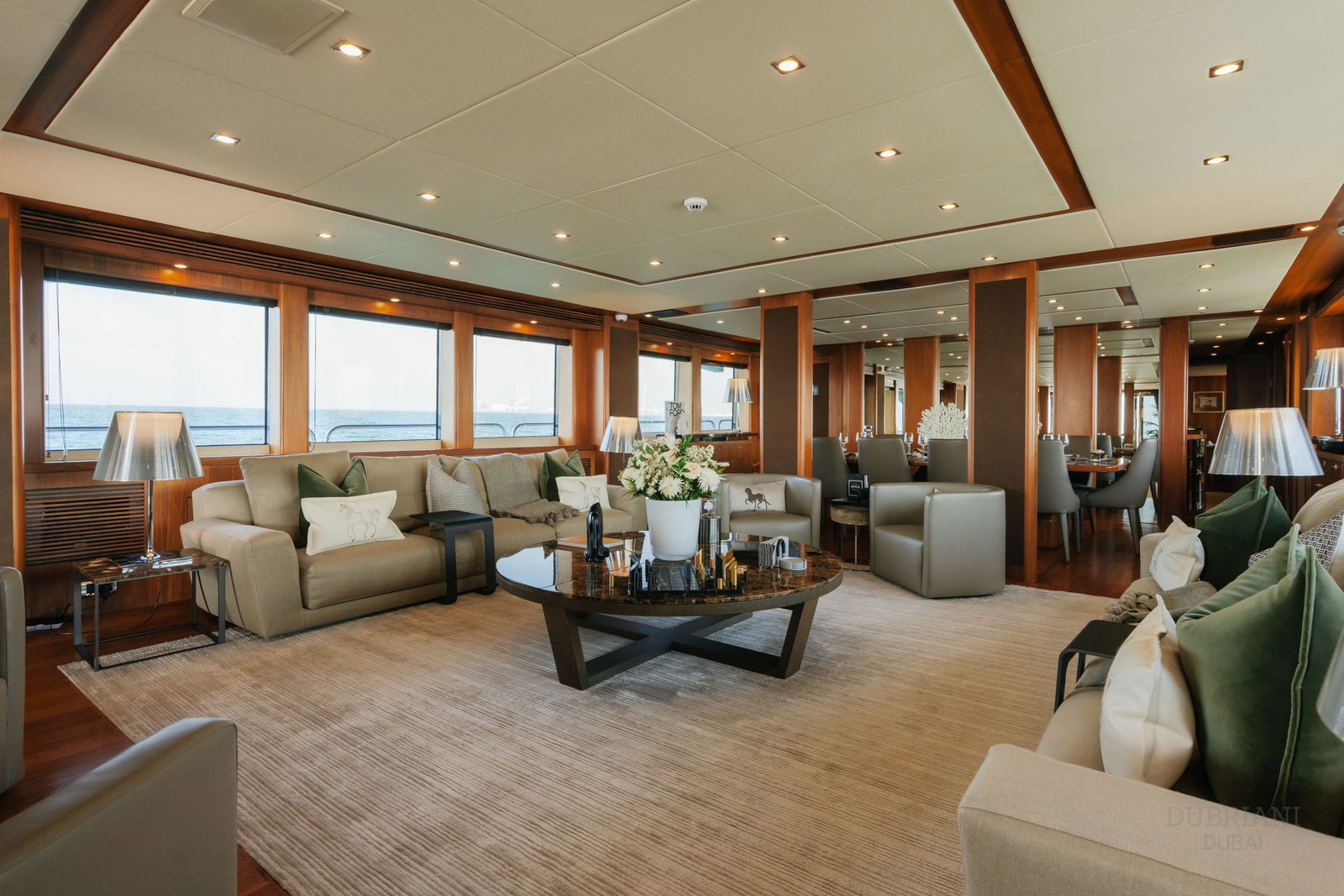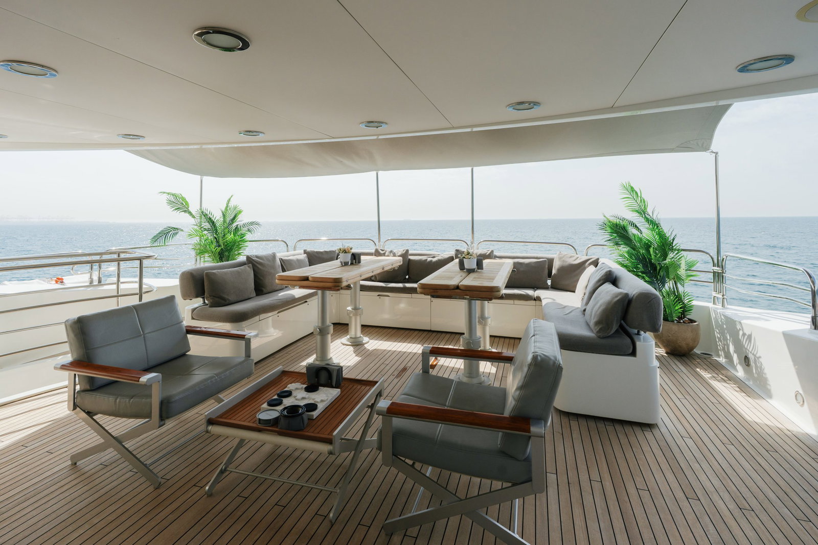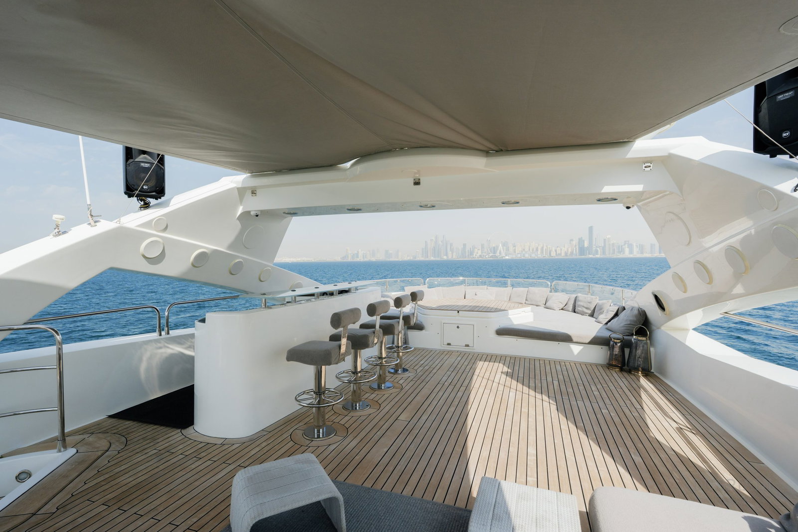 Aurora 130 is designed for high-capacity, high-profile hosting. With multiple entertainment zones across expansive decks, she allows guests to experience the Abu Dhabi Grand Prix from a position of authority and comfort.