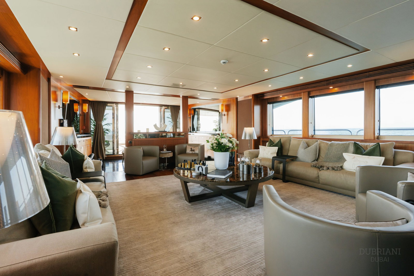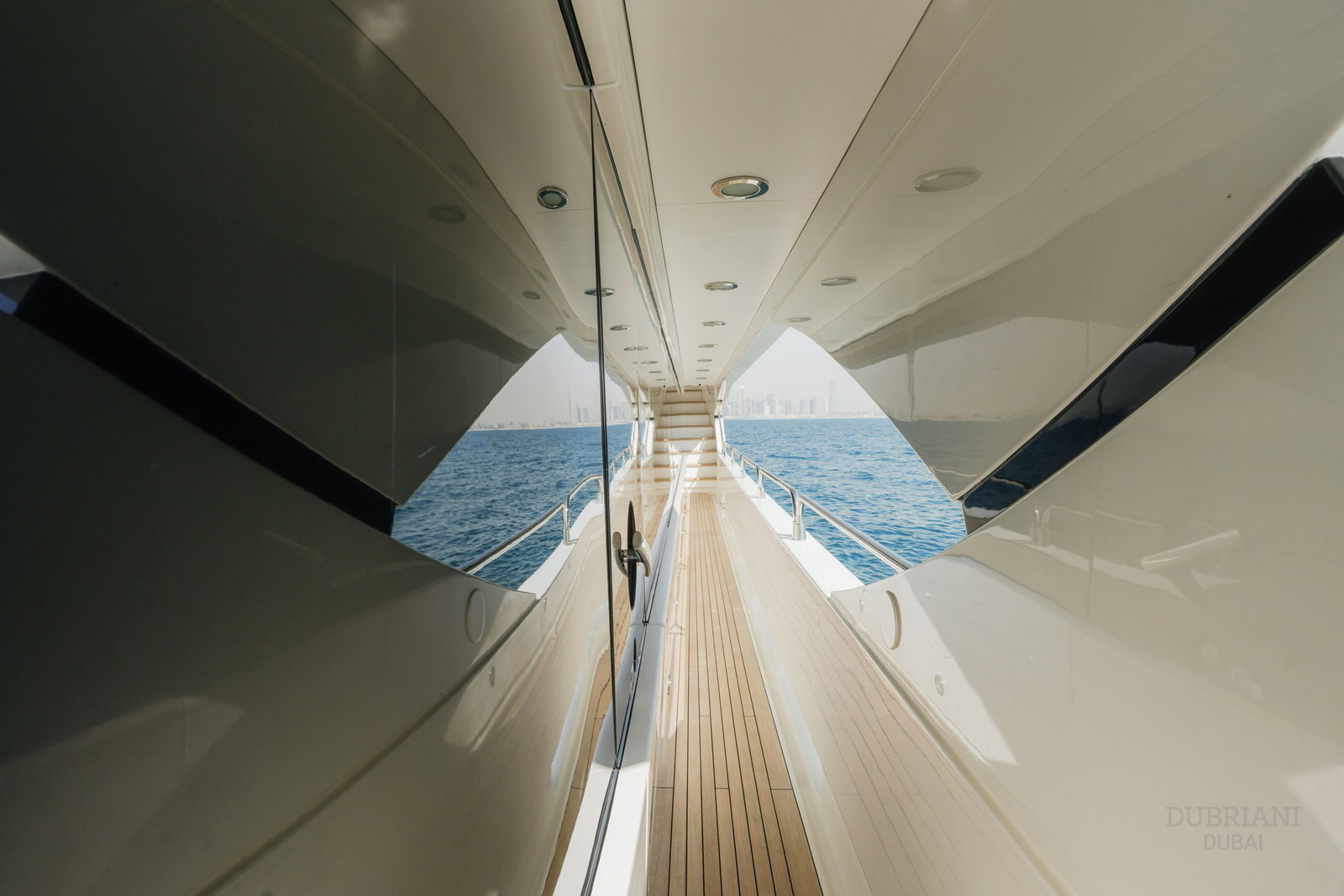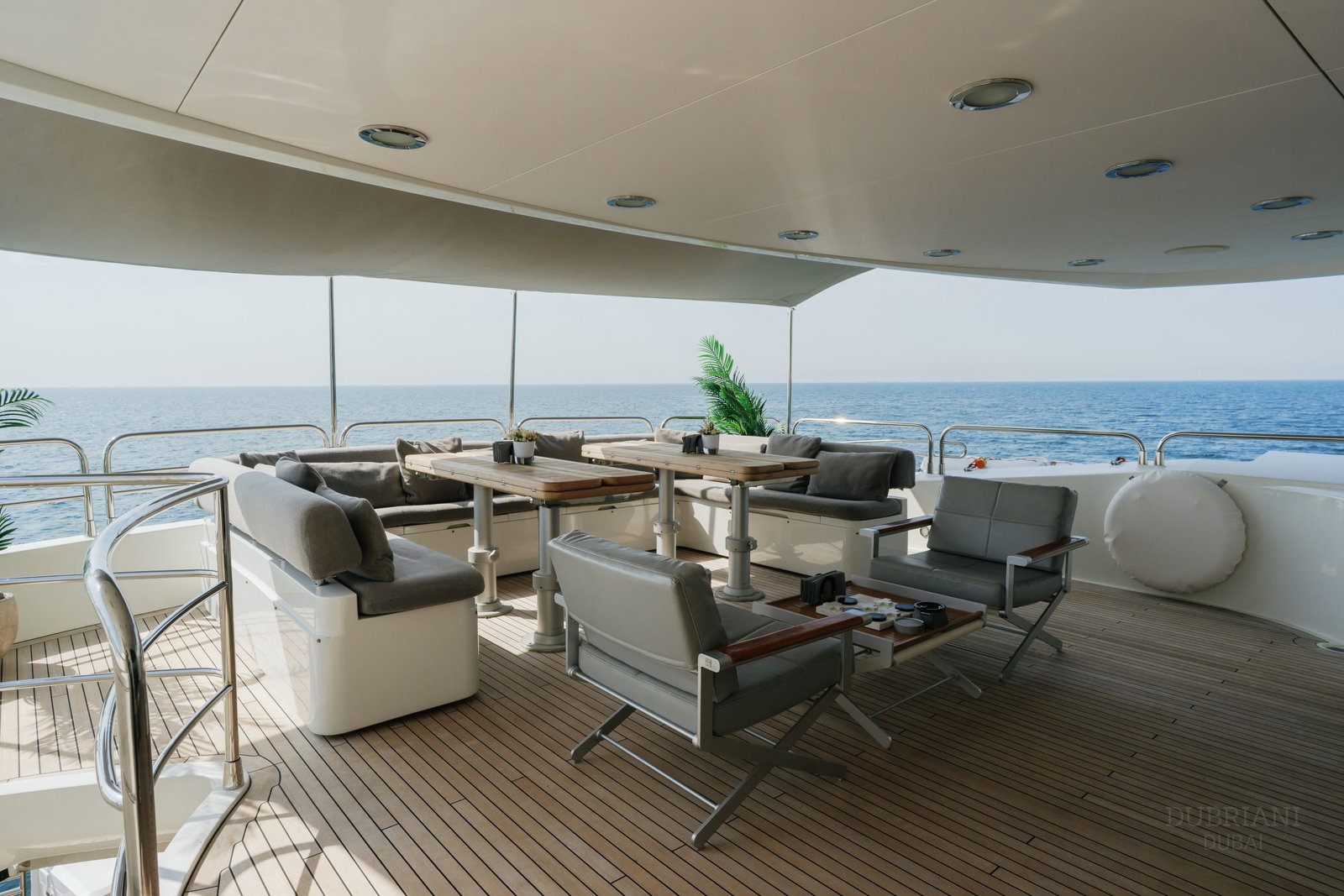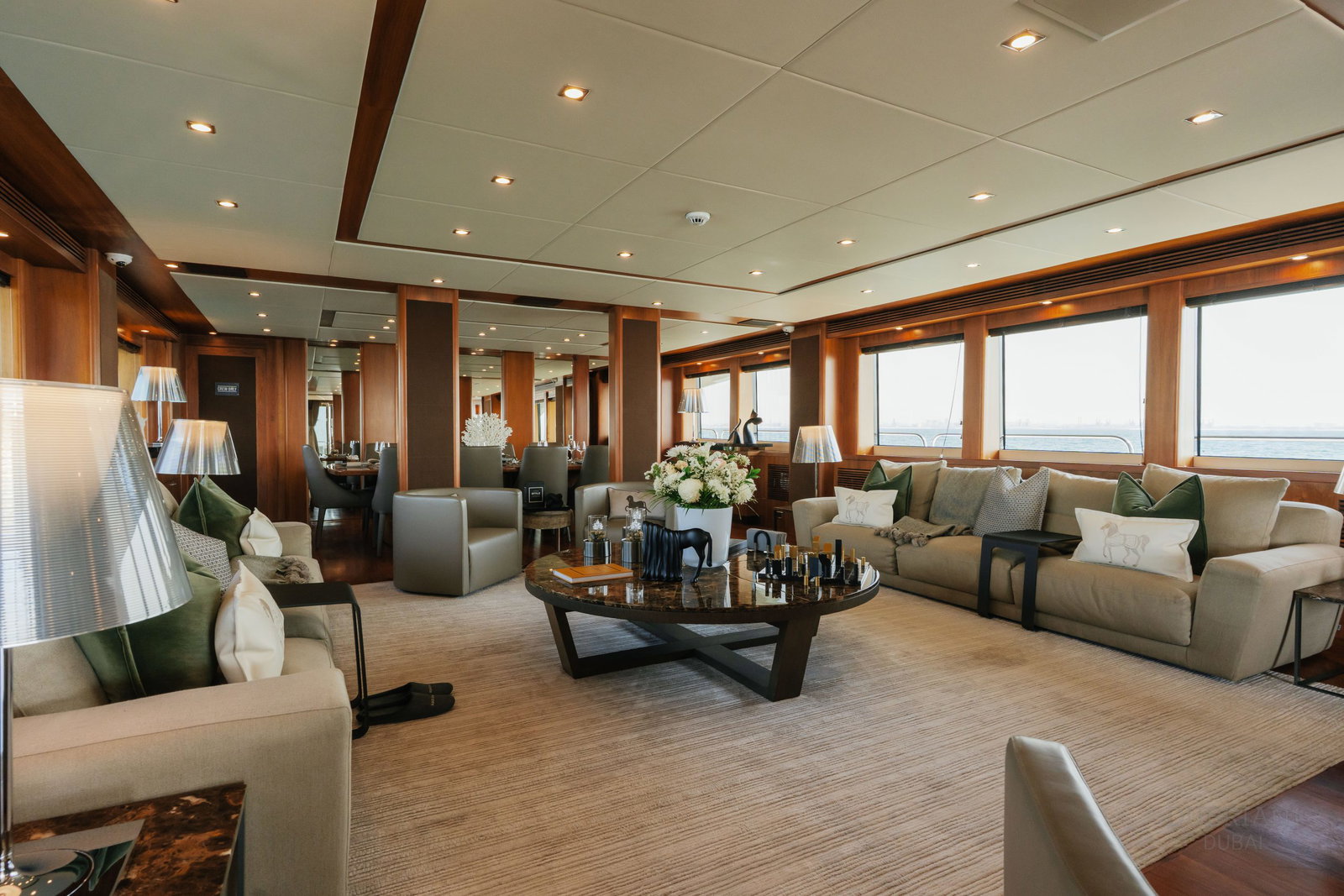 Aurora 130 is designed for high-capacity, high-profile hosting. With multiple entertainment zones across expansive decks, she allows guests to experience the Abu Dhabi Grand Prix from a position of authority and comfort.