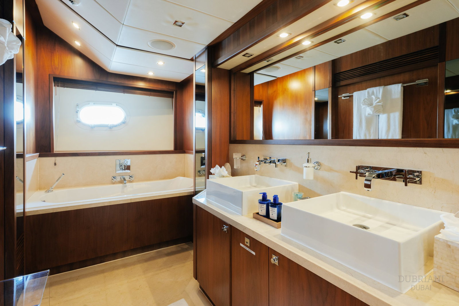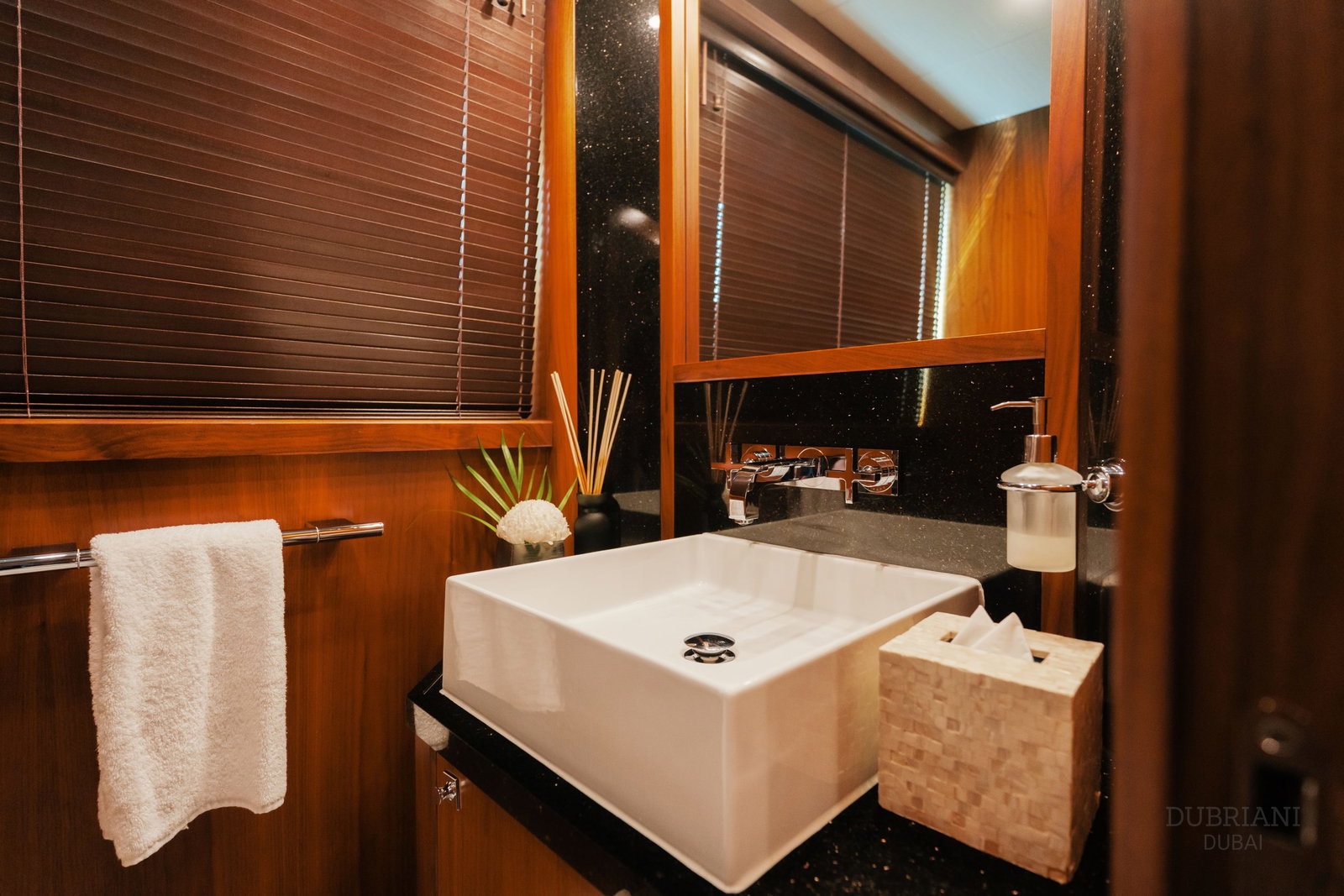 The layout ensures that even at higher guest capacity, the yacht never feels crowded — maintaining fluid movement and visual connection to Yas Marina throughout the weekend.