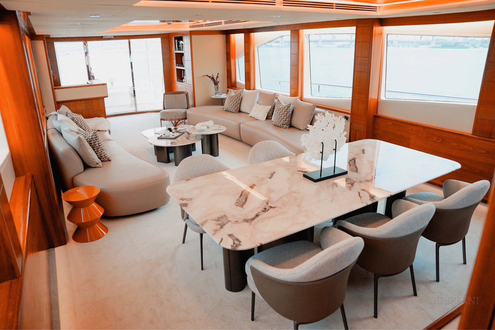 Luna 101 is designed for groups who want a commanding presence during the Abu Dhabi Grand Prix. With expansive decks, multiple social zones, and balanced indoor-outdoor flow, the yacht adapts effortlessly to the evolving energy of the Formula 1 weekend.