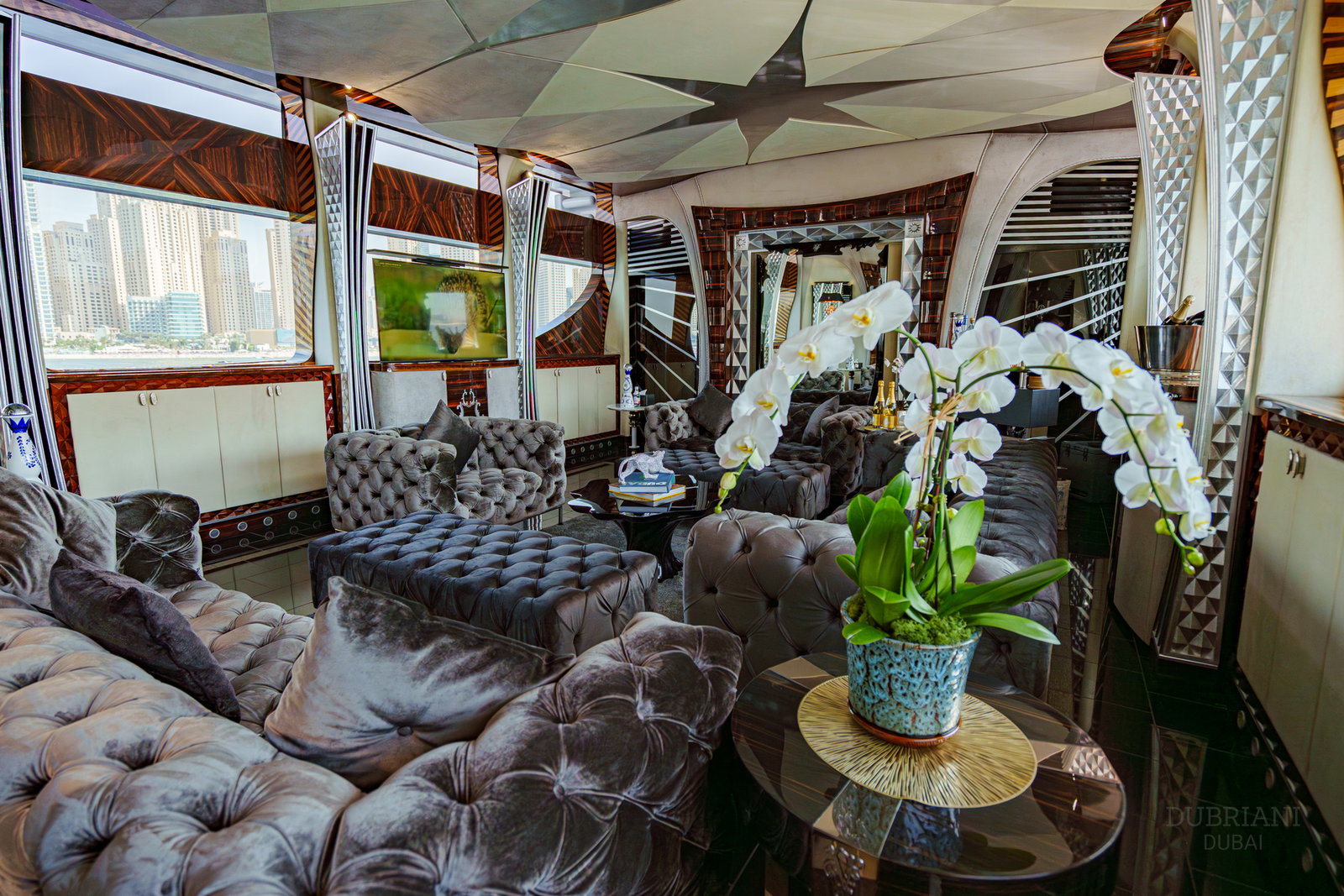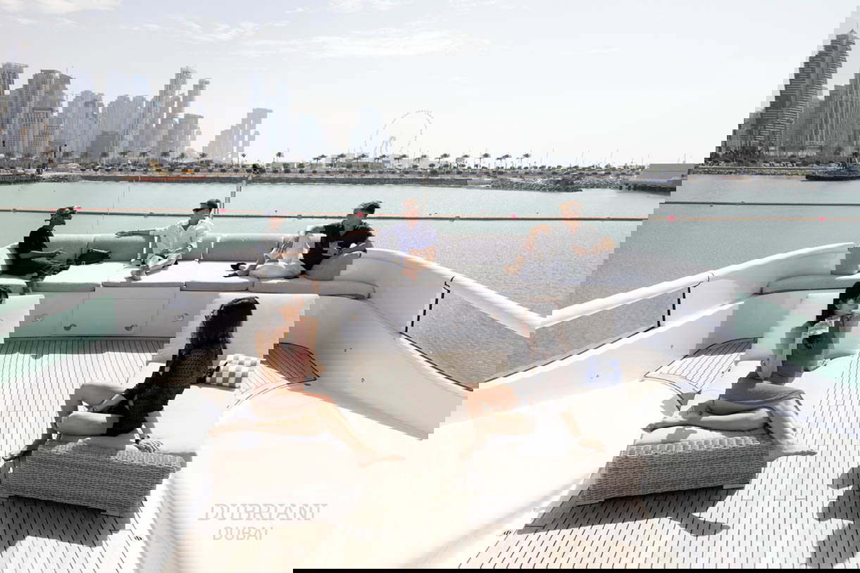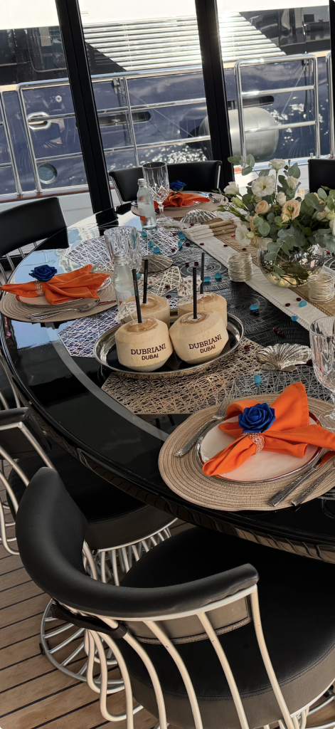 At nearly 50 metres, she is one of the most distinctive and talked-about yachts available in Dubai — chosen for guests who want scale, energy, and a setting that immediately commands attention.