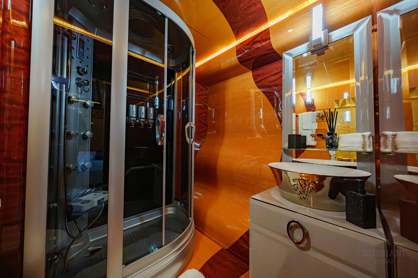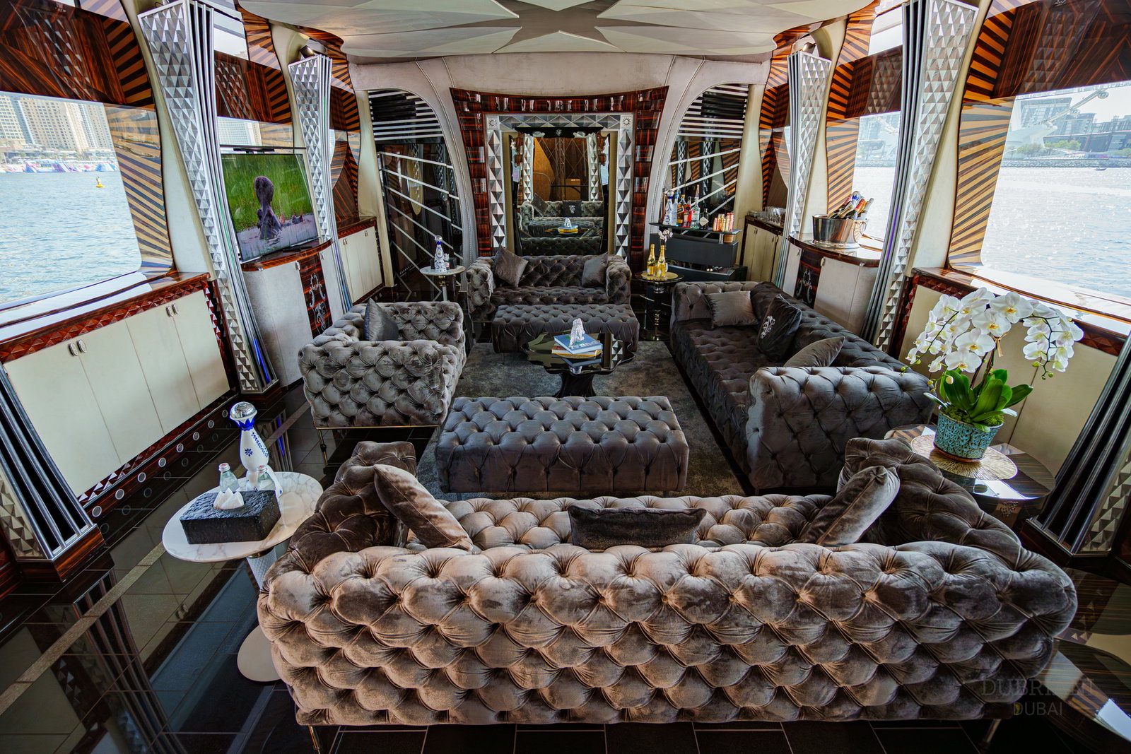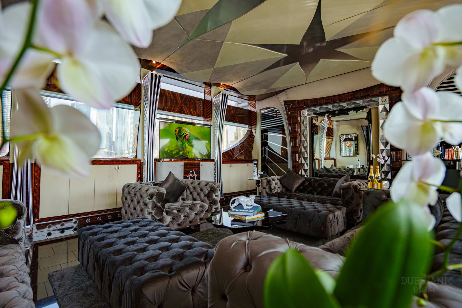 At nearly 50 metres, she is one of the most distinctive and talked-about yachts available in Dubai — chosen for guests who want scale, energy, and a setting that immediately commands attention.