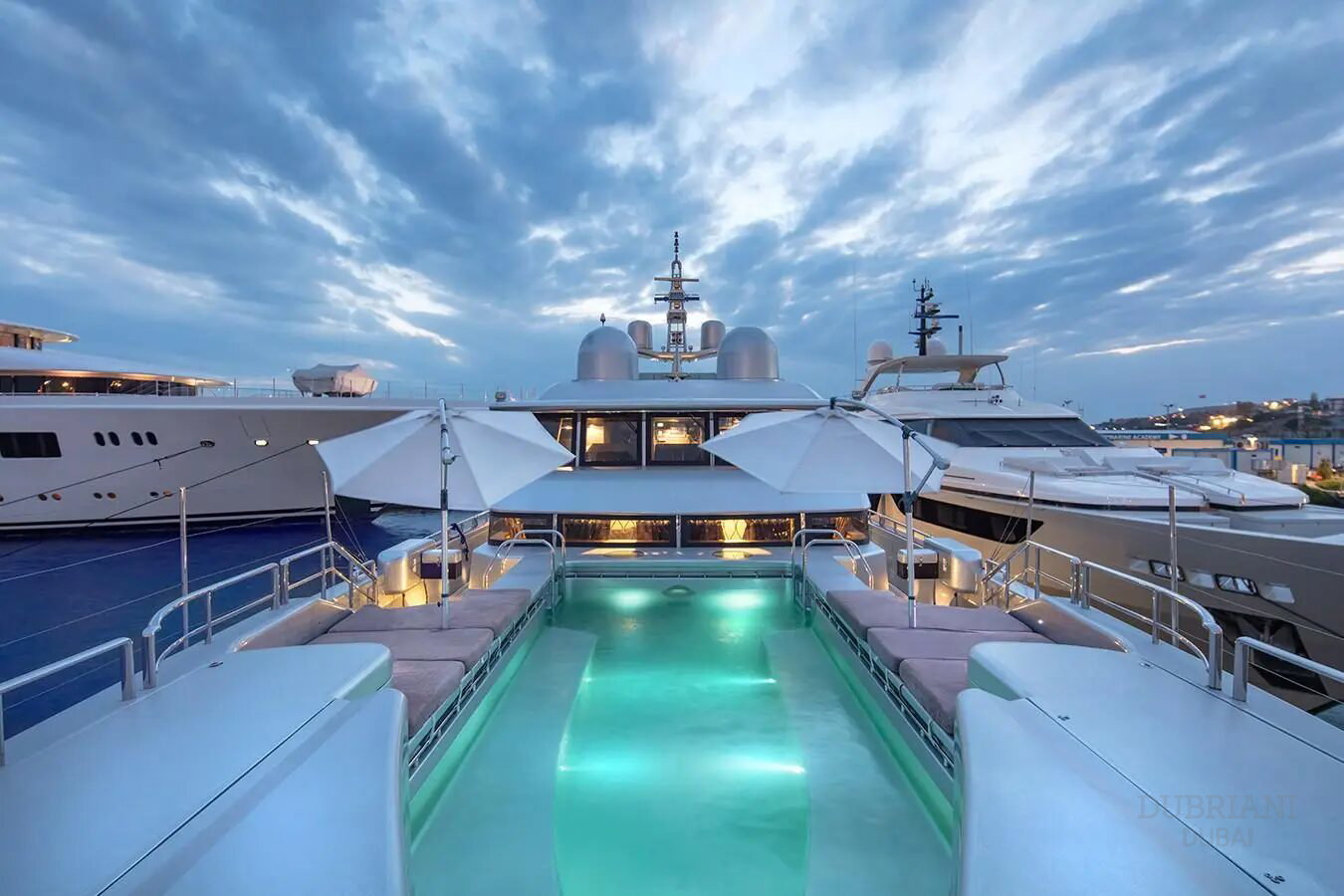 Thunder’s most defining feature is her full-sized swimming pool, a rarity even among superyachts.